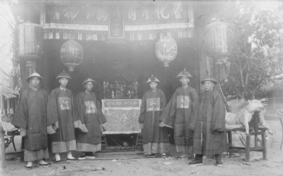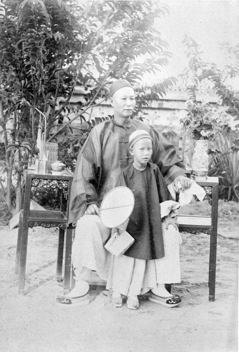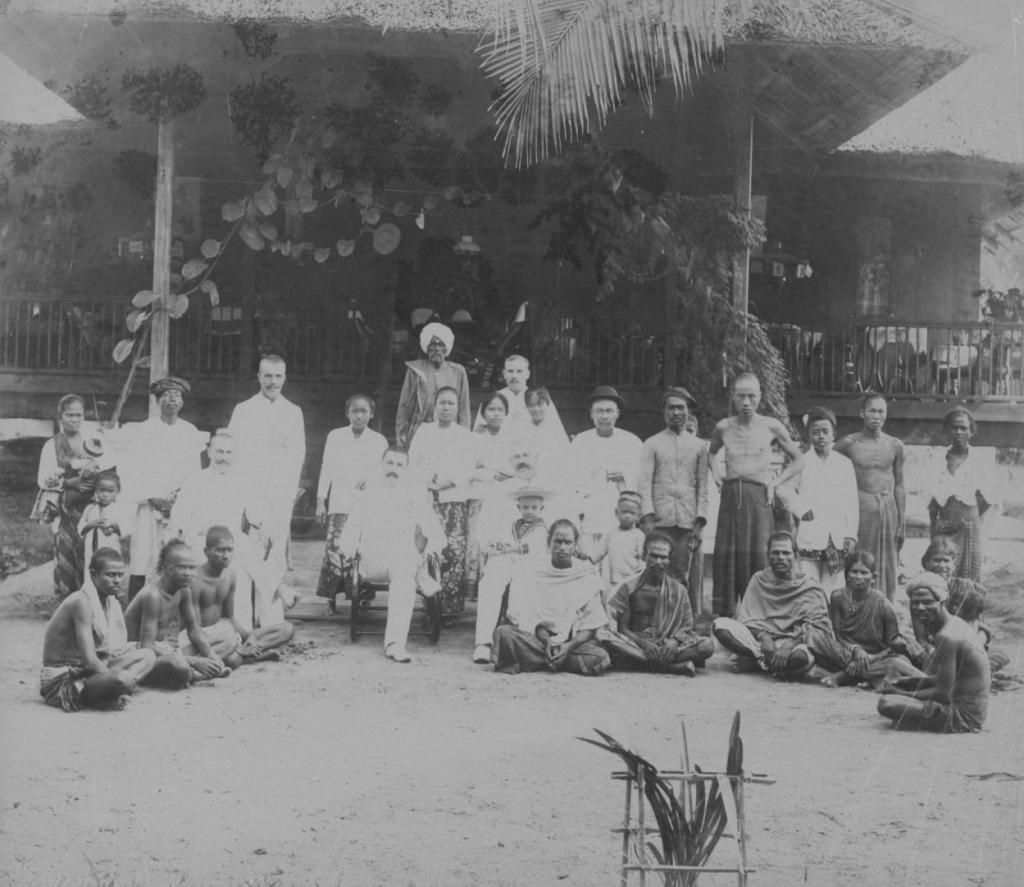Groepsportret van personeel en kinderen op tabaksplantage Medan-estate, c. 1890 – c. 1910
