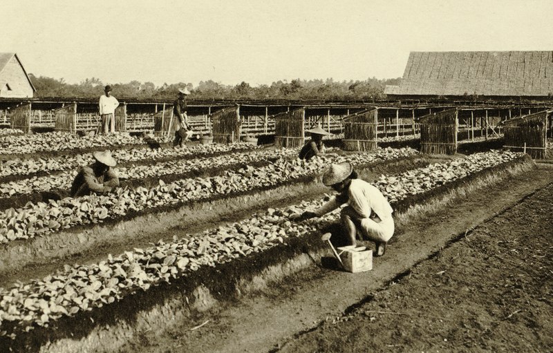 The busy work in planting had reached its peak. It is true that the Chinese field coolies had planted their fields and the young tobacco plants were standing in the ground on the last pett branch (field), but the entire planting still required a great deal of care and labor. Those young plants still had to be watered every morning until they were properly upright and grown. Searching for caterpillars on the tobacco in the previous fields could not be interrupted for a day, because each caterpillar that remained in the top of a plant ate several holes in it, resulting in ‘piece leaves’, so great damage.