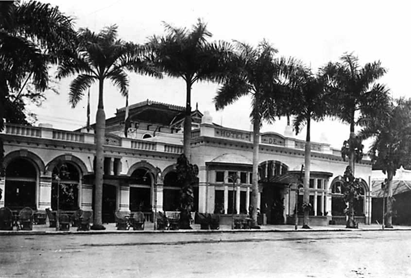The oldest established hotel in Medan is the Medan Hotel, which opened its doors in the year 1888. It is the rendezvous of the planters, who on the 1st and 16th of each month flock to this fine old hotel for the purpose of discussing matters of interest. The main building has two storeys and contains the vestibule and offices, a large dining hall, a billiard room, and sitting and reading rooms on the ground floor, whilst the sleeping apartments are on the floor above. Further accommodation is provided by an annex, erected parallel with the two sides of the principal building, including a private dining-room seating one hundred guests, and a large number of single and double bed chambers. The whole establishment is most comfortably furnished, the electric light being fitted in all the rooms. The service is efficient and the menu is distinctly recherche. The business of the hotel is conducted by a limited company and the management is most obliging, and must be complimented upon the excellent standard it maintains.