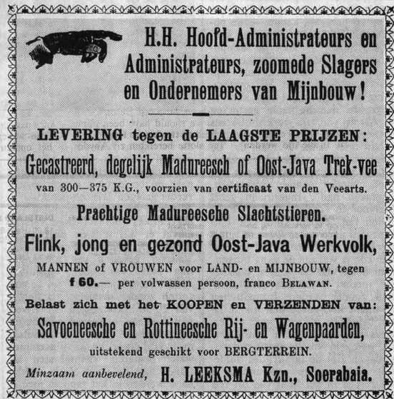 “… The sick, who certainly had not thought of ever coming out of this murder institution alive, were taken to the civil hospital in Lubuk Pakam, where one of the Javanese women also died within a short time. On her deathbed she was heard under oath by the controller and confirmed once more everything concerning the ‘treatment’ in the ‘hospital’ of the enterprise, in which she said more than forty days … She also announced that the tuan besar came every day to look through the lattice window and asked with interest to the sick whether she were not yet dead, while he z expressed my regret if this was not already the case … “‘Exaggerated’